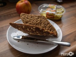 Nu speel ik dus het fotospel met oudcollegaatje Miranda, en haar laatste foto voor mij was een foto van een vlinder. Dus ik had meteen een idee voor de vervolgfoto. Gelukkig was Paul nog niet aan zijn broodje begonnen, dus daar kon ik nog wat creatiefs mee doen en op de foto zetten. Dat duurde niet heel lang hoor, wees gerust. Maar uiteindelijk heb ik er dus deze foto van gemaakt: