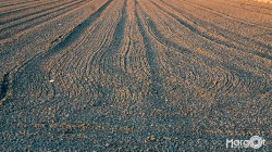 Aan de andere kant van het fietspad, dus richting de dijk, was het land ook bewerkt met dit werktuig (wie weet hoe het heet mag het zeggen, ik vind het wel leuk om te weten). Daar scheen de zon weer zo mooi op, fantastisch. Ik heb daar deze wat abstracte foto van gemaakt:
