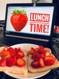 Na een ochtendje buffelen was het tijd voor lekkers, lunch met aardbeien! Een vitaminestoot konden we wel gebruiken…